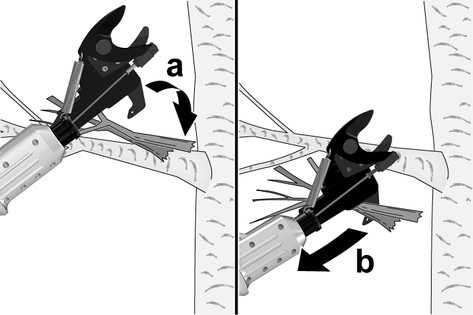 To protect against falling branches, do not stand under the branch or twig that is being cut.