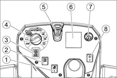 If the operator leaves the seat during work or while driving, the seat switch switches off the engine after a short delay.