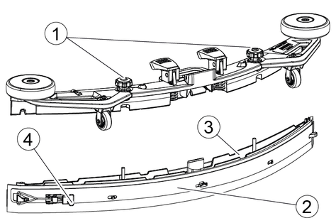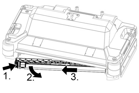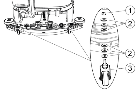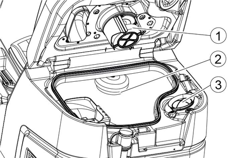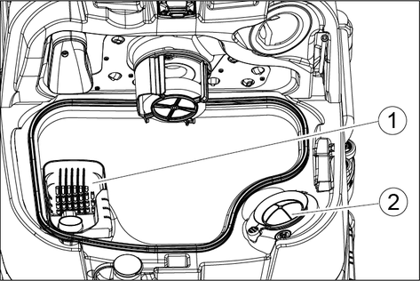 When driving through narrow spaces, the suction bar can be removed and hung in one of the openings on the lid of the waste water tank.