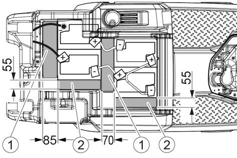 Danger of explosion. Do not place any tools or objects on the battery, i.e. on the end poles and cell connectors.