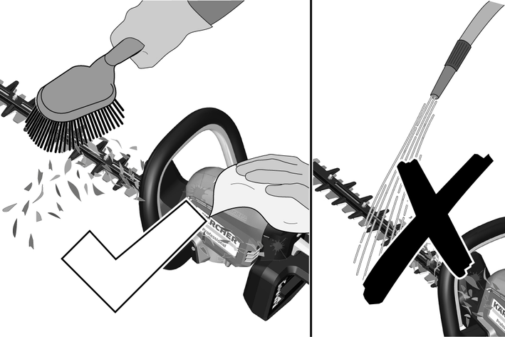 Each time after using the device, remove dirt from the cutting tools using a hard brush and apply a suitable oil for rust protection before fitting the blade guard. The manufacturer recommends using a spray for rust protection and oiling. Ask your Customer Service department to recommend a suitable spray. You can oil the cutting tools as described, each time before using the device.