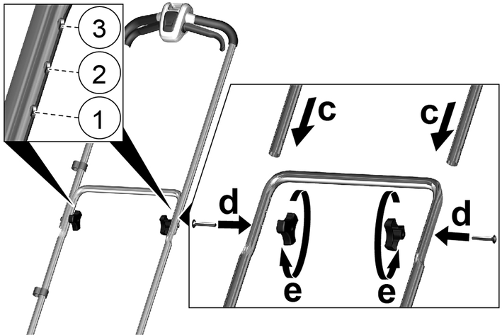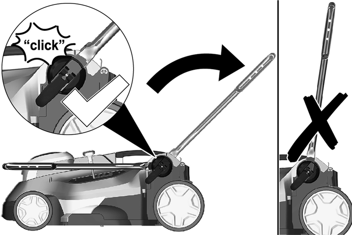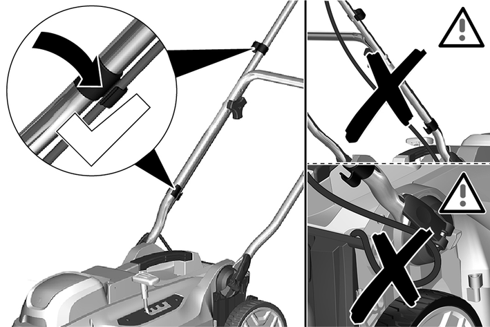 Take care to ensure that the motor control cable is not jammed or damaged in any other way during installation or when folding the handle.