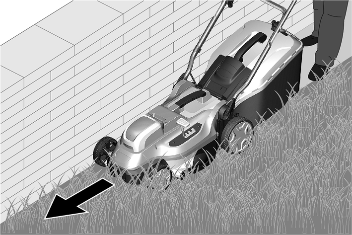 Lawn edges, e.g. along a wall, can also be mown using the device.
