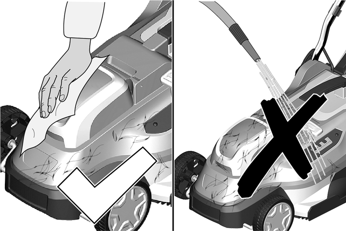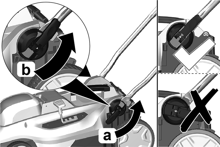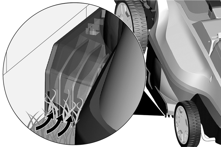 Empty the grass catcher regularly when using the grass catcher, otherwise the ejection chute can become clogged with cut grass (see Chapter Emptying the grass catcher).