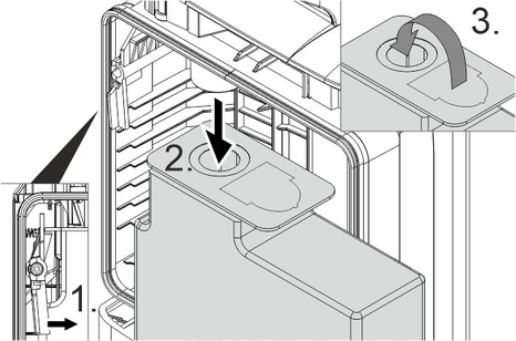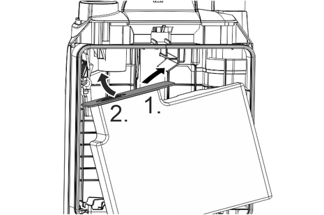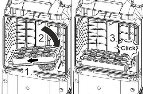 Slide the new HEPA filter (optional accessory) into the holder, swivel it downwards and lock it in place.