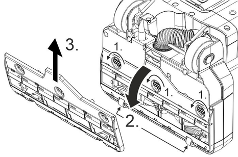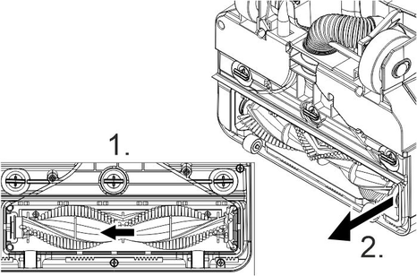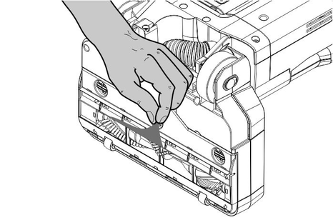 Push the roller brush to the left as far as it will go, swing it out, remove it and dispose of it.
