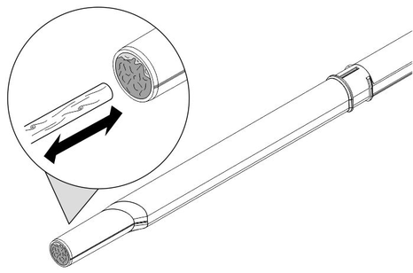 Visual brush inspection: The degree of wear can be determined by comparing the differently coloured indicator tufts. Replace the roller brush when the black bristles are the same height as the red bristles.