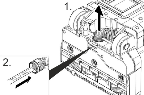 Slide the HEPA filter (optional accessory) into the holder, swivel downwards and engage.