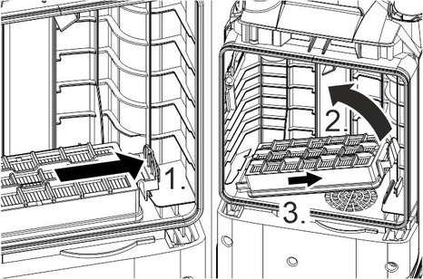 Unlock the HEPA filter (optional accessory), swing it upwards and remove it.