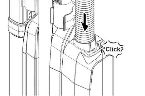 When inserting the suction hose into the suction hose port, make sure that it engages in place.