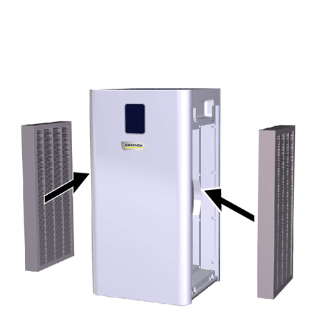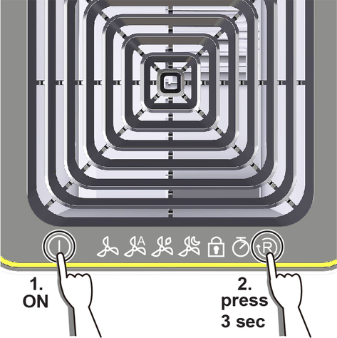 The filter should be changed after 2500 - 3000 hours of operation at the latest. If the device gets louder, an unpleasant smell emanates from the device (filter) or the filter is visibly dirty, also earlier. If the filter service life is less than 150 hours, the symbol flashes in the display (flashing frequency 2x/second) to remind you to change the filter.
