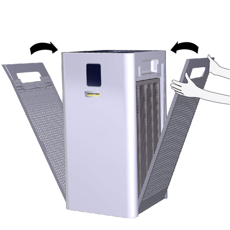 Open the two filter covers on the recessed grip and remove them with both hands.