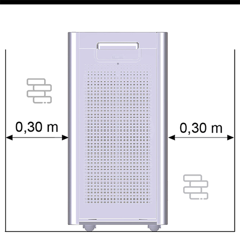Place the device on a level surface. Ensure that a distance of 0.30 m is maintained to each side.