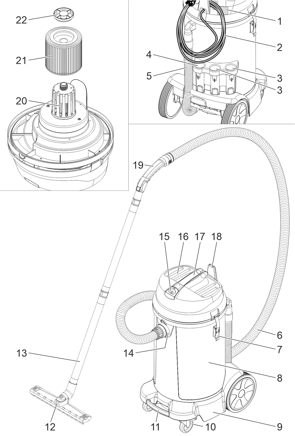 Never remove the wet filter when vacuuming.On completion of wet vacuum cleaning: Clean the float and container with a damp cloth and dry.