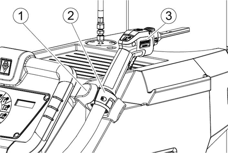 Carefully unscrew the screw plug from the screw flange. Let the hose flange hang down to prevent dirt from entering the carbon dioxide hose.