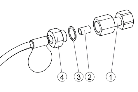 After each loosening or unscrewing of the screw plug, the carbon dioxide filter and the copper seal must be replaced. If this is not done, particles can become detached from the carbon dioxide filter and lead to malfunctions.The carbon dioxide filter is backwashed and cleaned as soon as the pressurised cylinder connection is disconnected from the carbon dioxide cylinder. Regular replacement of the carbon dioxide filter is therefore not necessary.