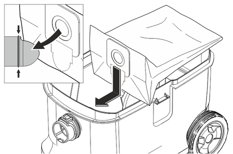 Retirar o saco do filtro de velo do bocal de aspiração.