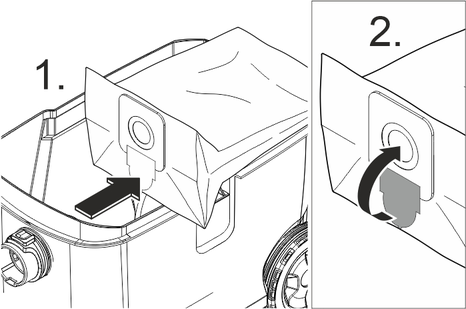 Engatar a lingueta de fecho e fechar bem o saco do filtro de velo.