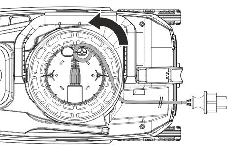 Rodar o tambor do cabo 90° no sentido contrário ao dos ponteiros do relógio, de modo a que o cabo de rede fique ligeiramente pré-tensionado e, por conseguinte, encostado ao pino.