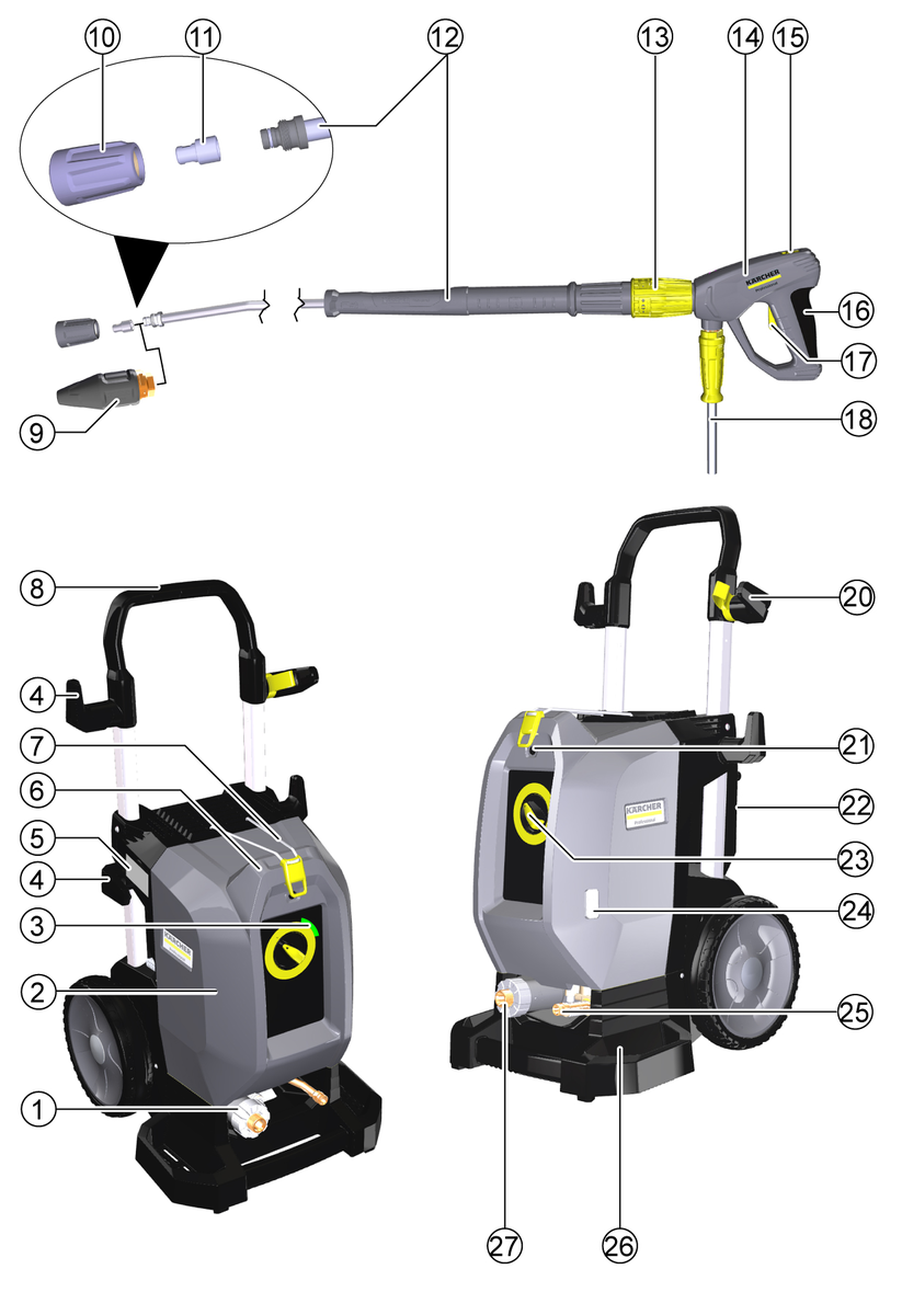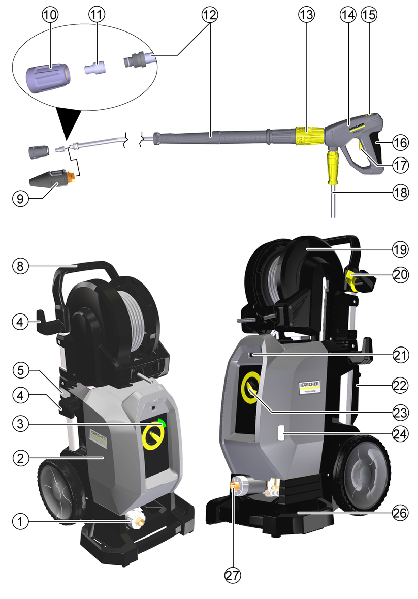 A rotary nozzle is included in the scope of delivery of the HD...Plus variant.