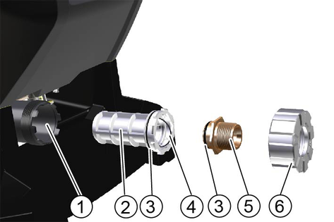 When the water quantity is reduced via the pressure/quantity control on the trigger gun, the overflow valve opens and part of the water flows back to the suction side of the pump.
