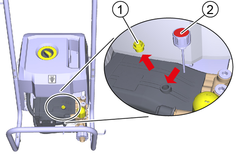 The device may only be operated when it is standing on level ground. If the device stands at an angle, the high-pressure pump can be damaged by insufficient lubrication.