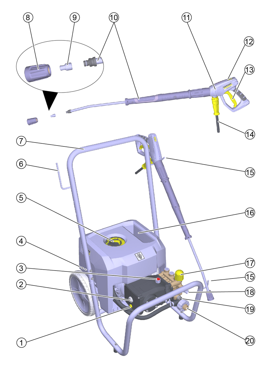 The high-pressure jet must not be directed at persons, animals, live electrical equipment or at the device itself. Protect the device from frost.
