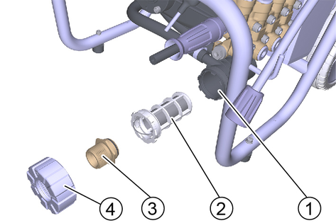 Screw the suction hose with filter onto the water connection (for the order number see chapter Technical data).