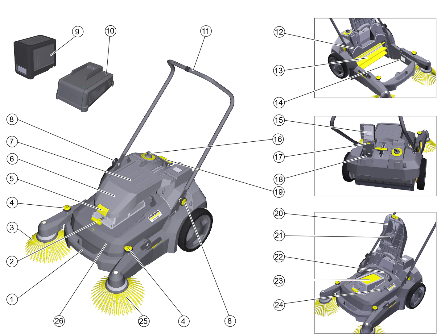 The device requires a 36 V battery pack from the Kärcher Battery Power / Battery Power+ system and the corresponding charger to operate. Both are not included in the scope of delivery and can be purchased separately according to the application requirement.
