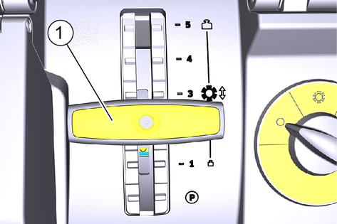 To park and transport the device, move the lever to the "P" position. Roller brush is fully raised and damage to the bristles is avoided.