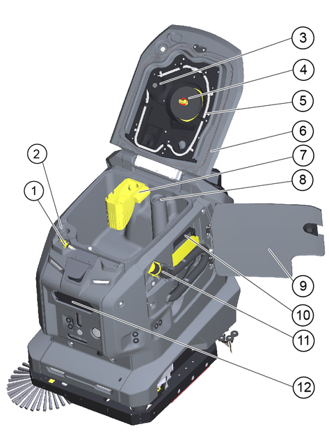 Never sweep off explosive liquids, combustible gases or undiluted acids and solvents. This includes petrol, paint thinner or heating oil which can generate explosive fumes or mixtures upon contact with the air. Acetone, undiluted acids and solvents must also be avoided as they can harm the materials on the machine.