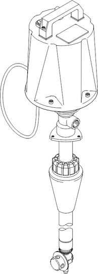 The interior cleaner consists of the drive part, the carrier tube and the cleaning head. The nozzles on the cleaning head rotate around two axles and thus cover every part of the container.