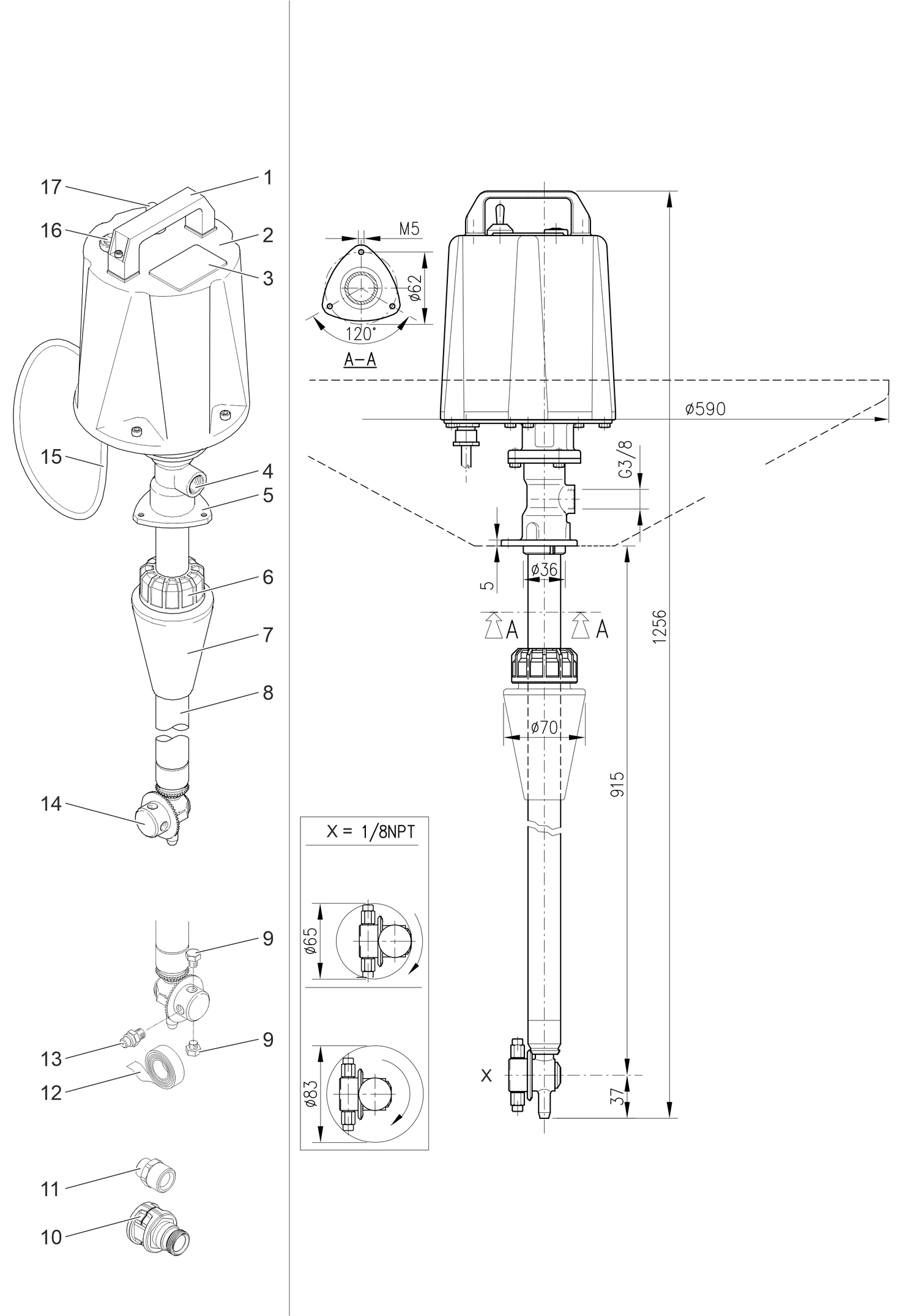 Flow rate l/h (l/min) | 600 (13,3) | 750 (16,7) | 1200 (16,7) |