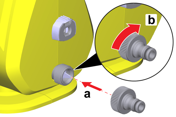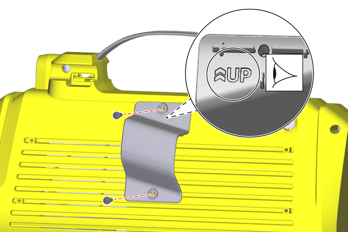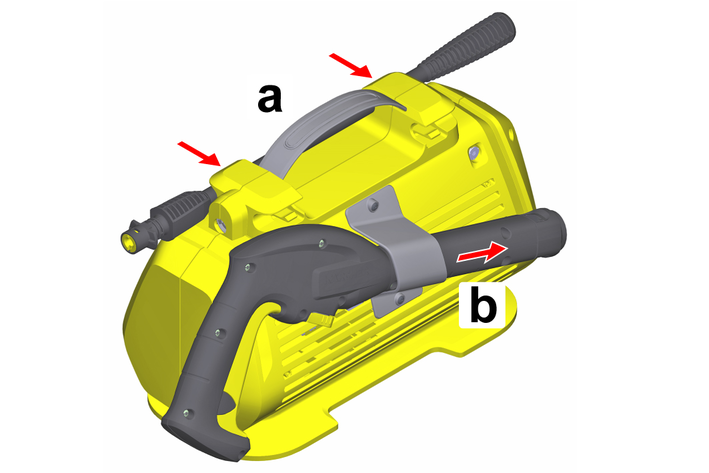 Attach the storage for the high-pressure gun to the device with the two screws.