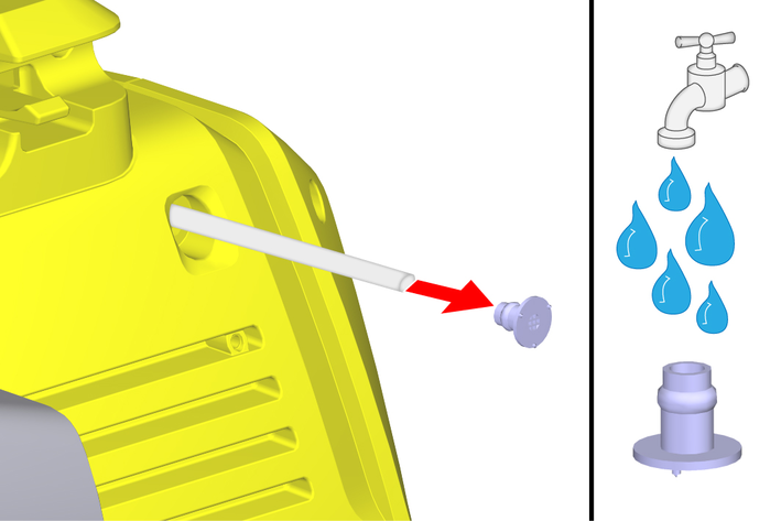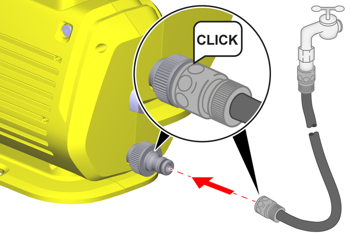 Plug the garden hose onto the water connection coupling.
