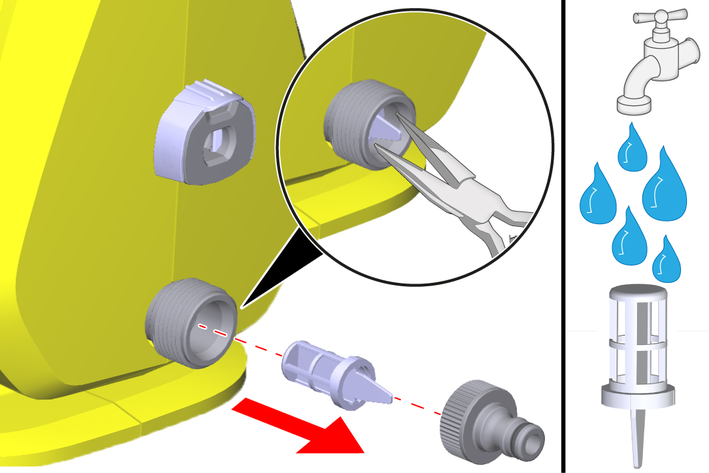 Pull the sieve in the water connection out using flat pliers.