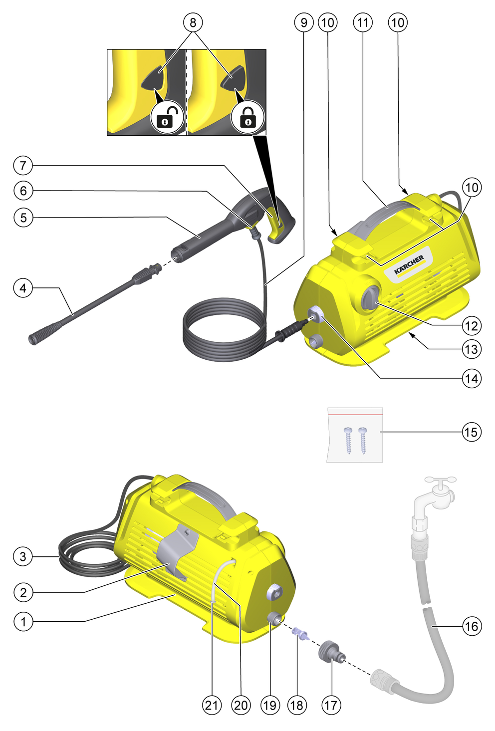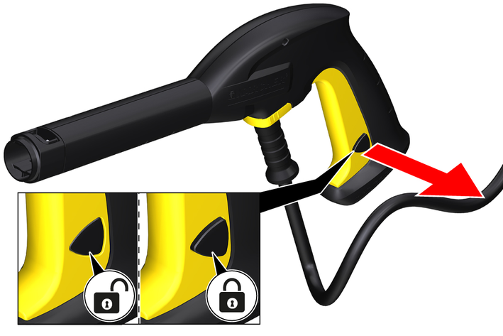 The lock locks the lever of the high-pressure gun and prevents the device from starting unintentionally.