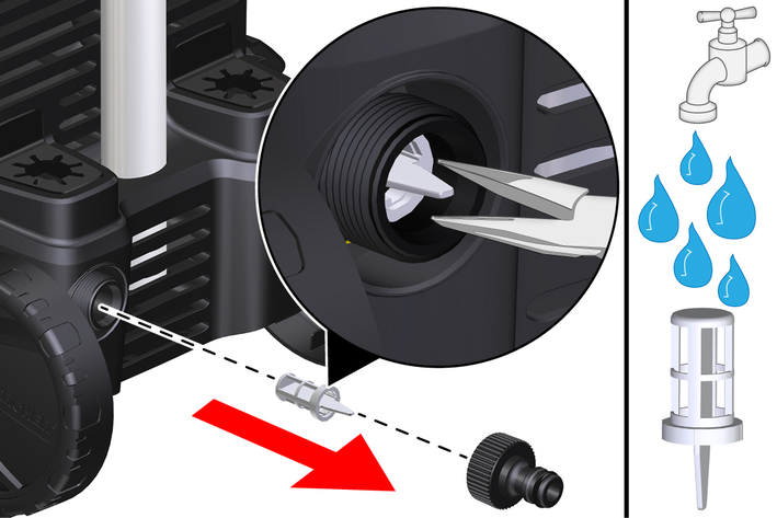 Puxar o filtro da ligação de água para fora com um alicate de pontas chatas.