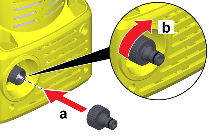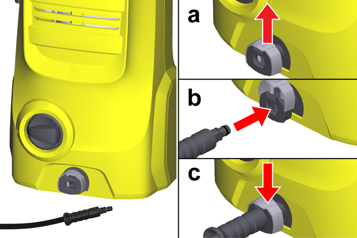 If the lever of the high-pressure gun is released, the pressure switch turns off the pump and the high-pressure jet stops. The pump switches on again when the lever is pressed.
