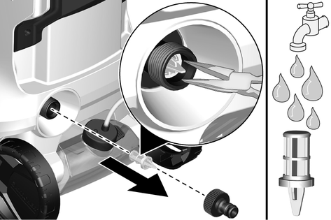 Limpar o filtro da mangueira de aspiração do produto de limpeza.