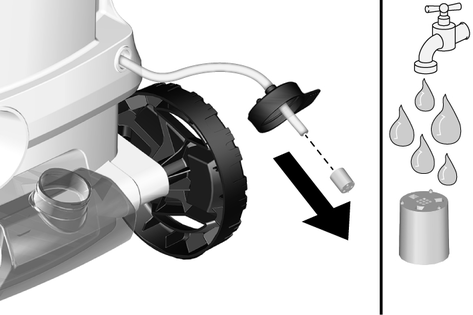 Puxar o filtro da mangueira de aspiração para produto de limpeza.