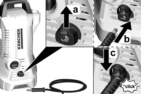 Inserir a mangueira de alta pressão no acoplamento rápido, até que engate de forma audível.