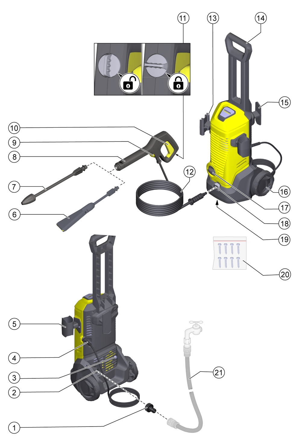 The lock locks the lever of the high-pressure gun and prevents the device from starting unintentionally.