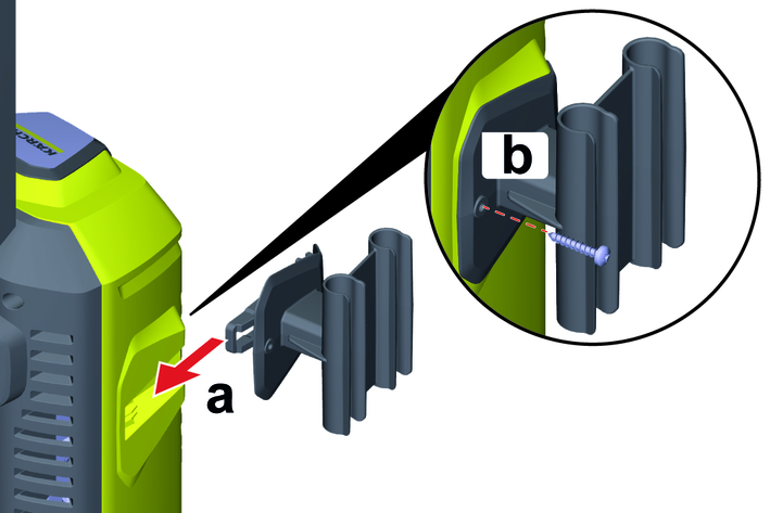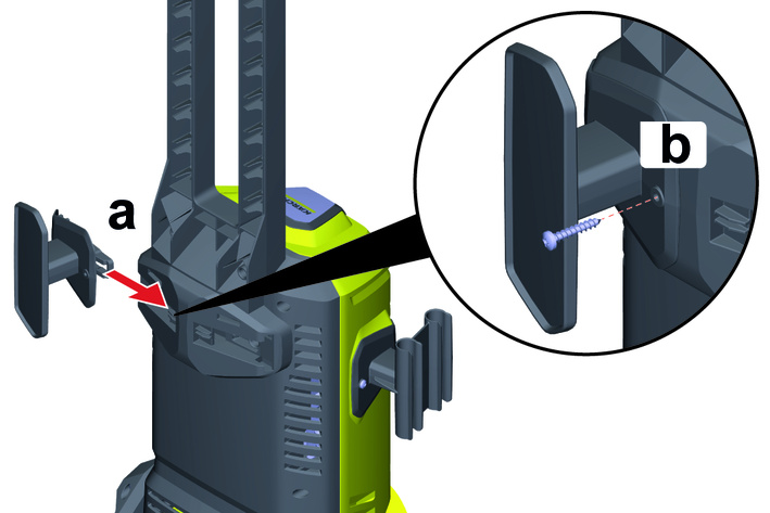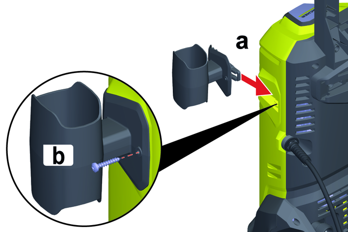 Push in the storage option for the high-pressure gun into the holder on the device.