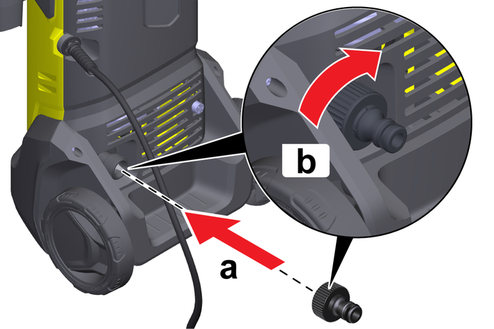 Mount the high-pressure hose on the device: