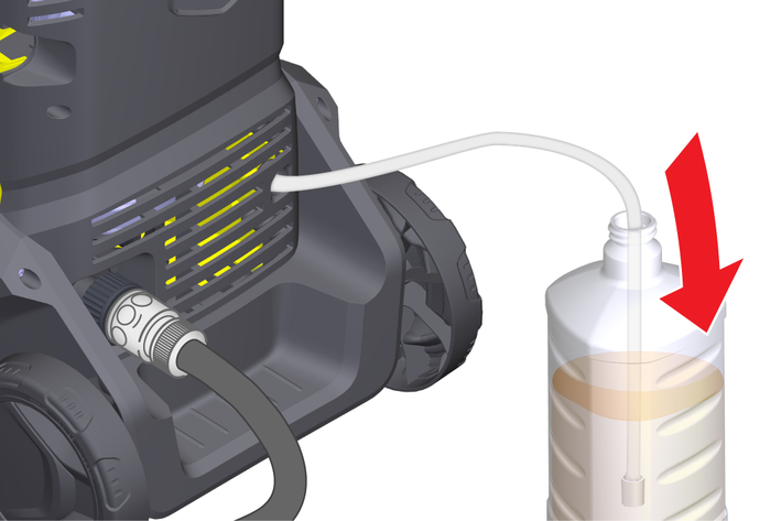 Aerosols can be formed when using high-pressure cleaners. Inhaling aerosols can be harmful for your health. Depending on the application, the use of fully shielded nozzles (e.g. surface cleaners) can significantly lower the emission of aqueous aerosols. Depending on the environment to be cleaned, wear a suitable respiratory protective mask of class FFP 2 or comparable to protect yourself from inhaling aerosols if the use of a fully shielded nozzle is not possible.
