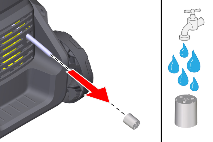 Rinse the high-pressure nozzle with water from the front.