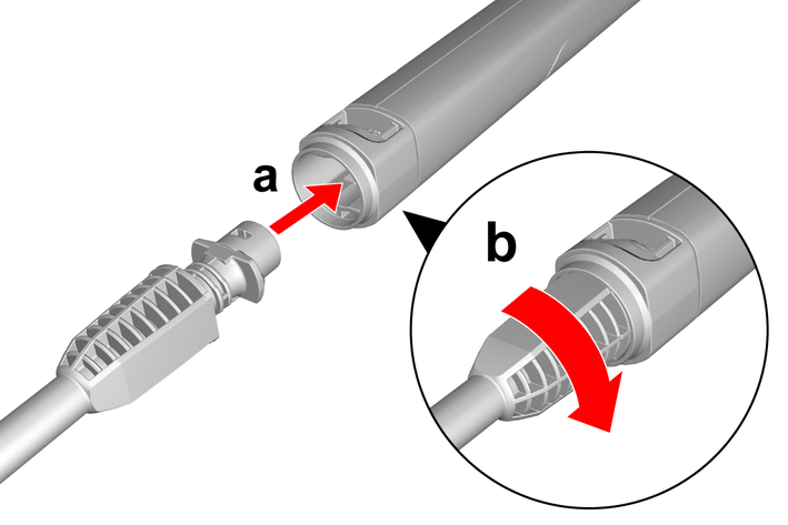 Push in the storage option for the spray lances into the holder on the device.