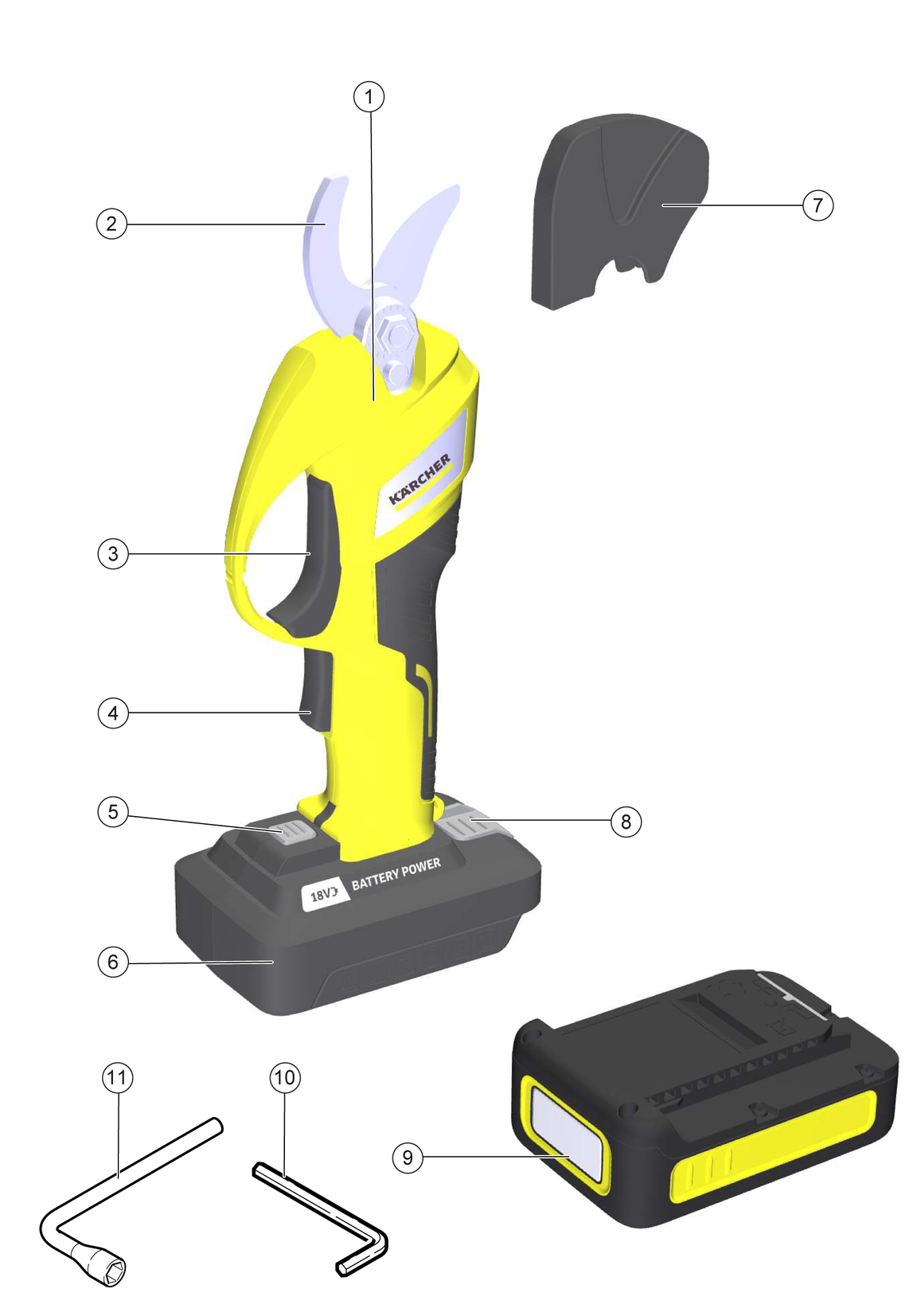 ![]() | Suitable battery packs and chargers are marked with the KÄRCHER 18 V Battery Power (+) System symbol. Suitable battery packs bear the designation "Battery Power 18/... and Battery Power+ 18/...". Suitable chargers bear the designation "BC 18 V ...". |