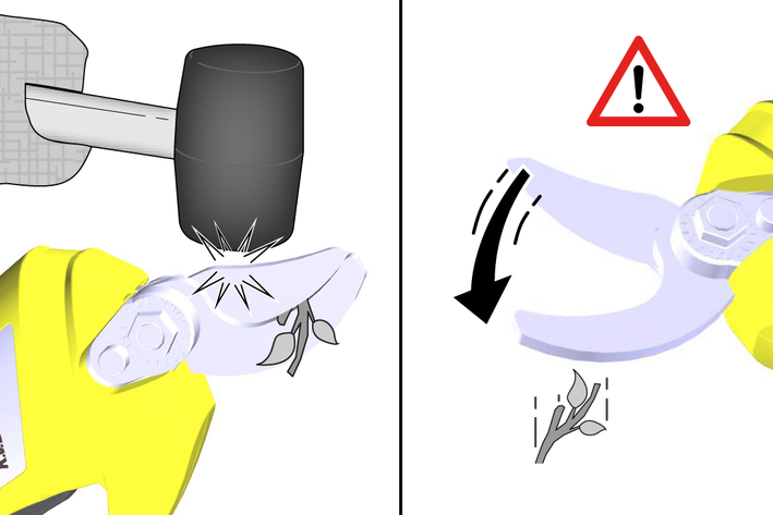 The device is intended for cutting and pruning small branches and twigs (for maximum branch thicknesses see Technical data). The user stands securely on the ground.